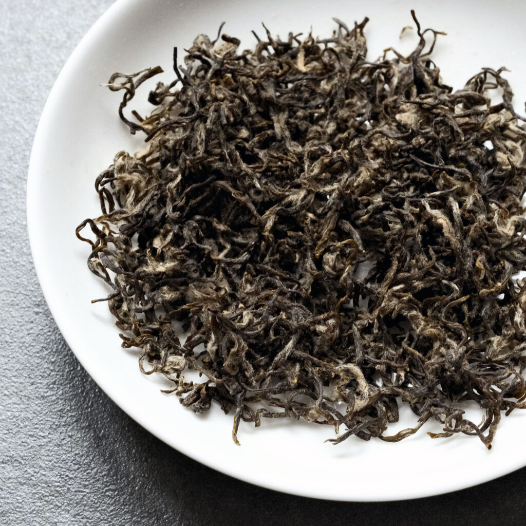 Huangshan Maofeng (Yellow Mountain Fur Peak) or Premium Maofeng, Covered in fine white “fur” (mao), these tender tips deliver an orchid-like fragrance, refreshing crispness, and a slight nutty undertone. → Grown at high altitude on the misty Yellow Mountains → exceptionally clean, pure, and full of mountain qi (energy).